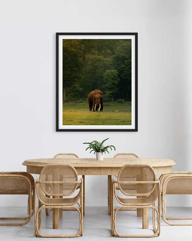 Capture the majestic presence of India’s wild elephants with this stunning portrait of a magnificent tusker standing tall in a grassy field. The sheer power and beauty of this Indian elephant make a bold statement in any space. Framed in our eco-friendly wood frames, each piece reflects our commitment to sustainability and wildlife conservation. Perfect for those looking to bring nature’s grandeur into luxury interiors, this wildlife photograph celebrates India’s natural heritage while supporting conservation efforts. Whether you’re an art lover, a wildlife enthusiast, or a supporter of eco-conscious living, this print is a timeless addition to your home.